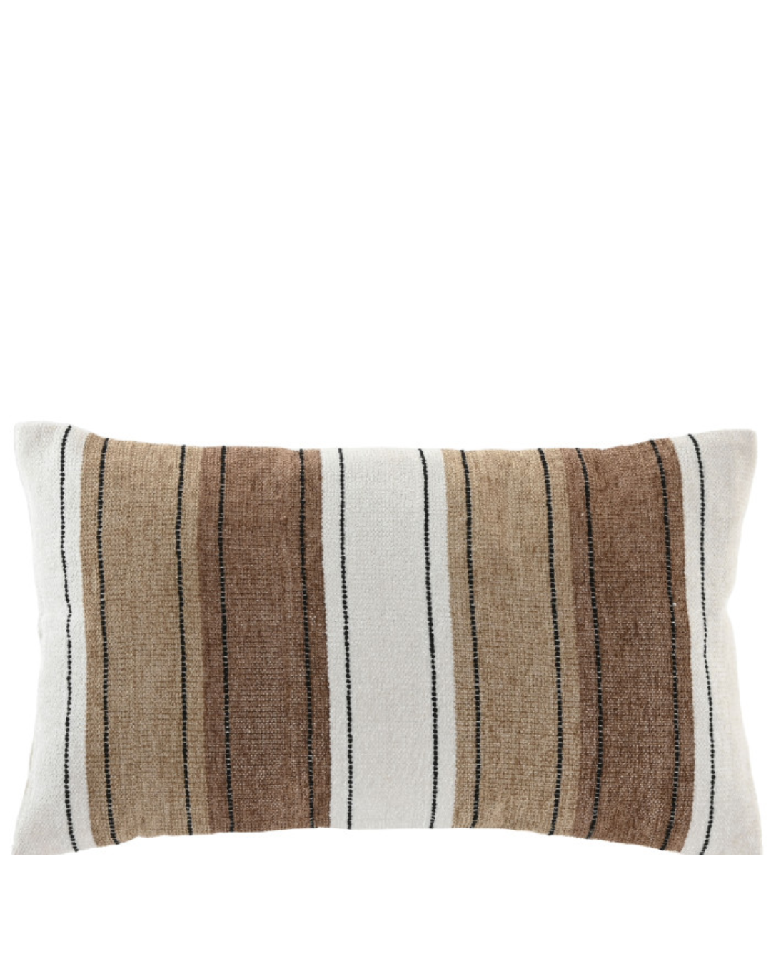 Cojin en tonos beigs y dos tonos marrones a rayas.Dimensiones 50×30.