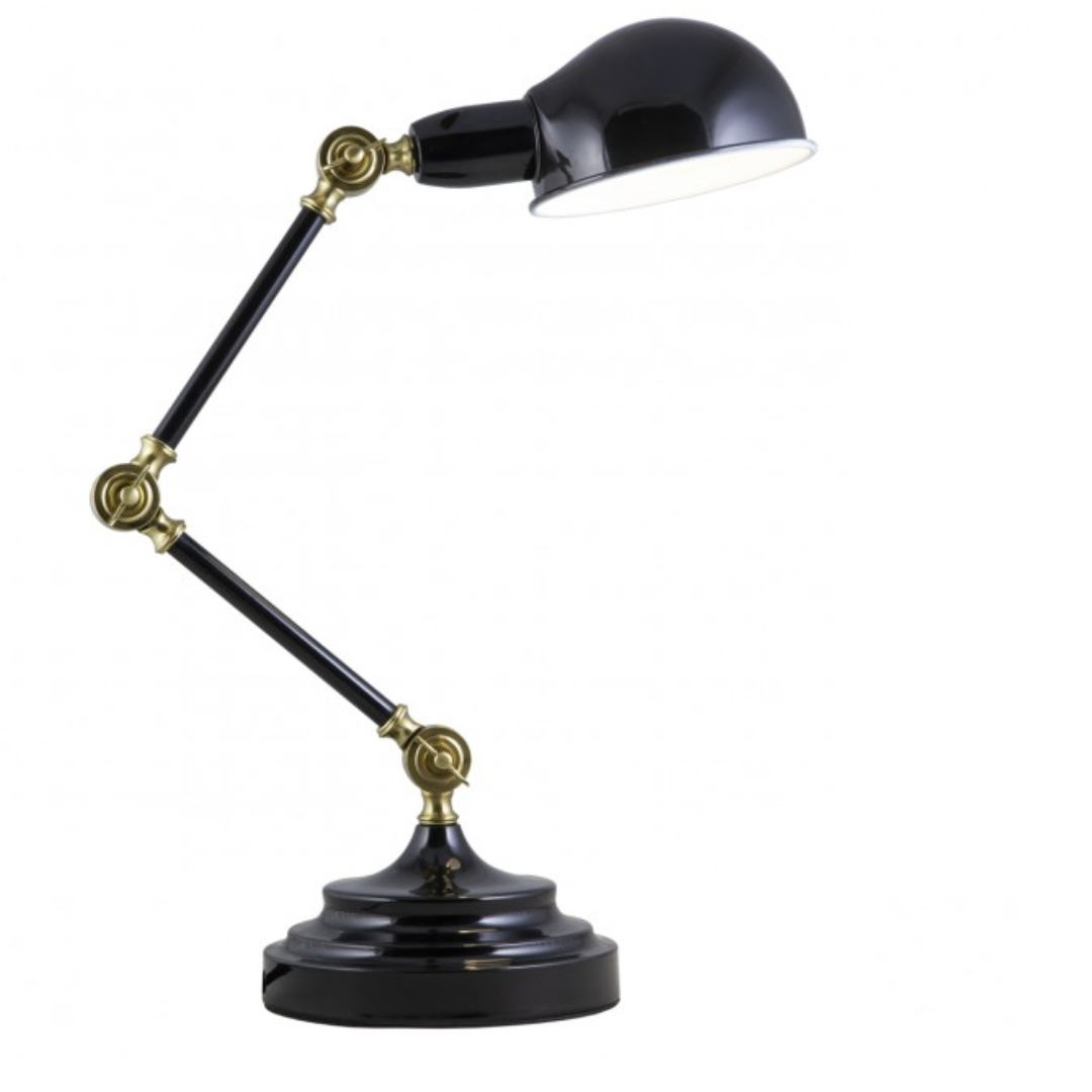Lámpara de sobremesa / Flexo de la Colección TADAO. Fabricado en metal en color negro y detalles cuero. Cabezal orientable y rotulado. Encendido ON/OFF en cable. Usa bombilla E14, Max. 1x 40W, compatibles con tecnología Led (no incluida). Un clásico